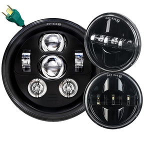 Eagle Lights 7" LED Headlight and 4.5" LED Passing Light Kit for Harley-Davidson® and Indian® Motorcycles - Generation III / Black